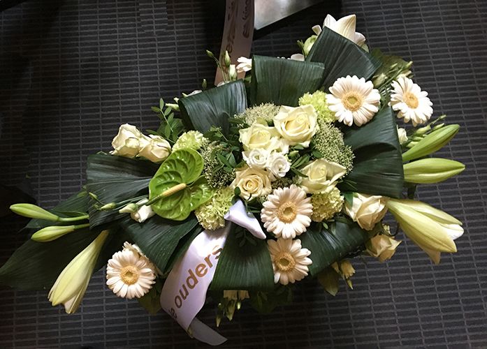 Het bloemstuk wordt zorgvuldig gemaakt met oog voor detail en kwaliteit, en kan een gepaste keuze zijn om de persoonlijkheid en het leven van de overledene te eren, terwijl het tegelijkertijd een troostende aanwezigheid biedt voor de rouwende familie en vrienden.